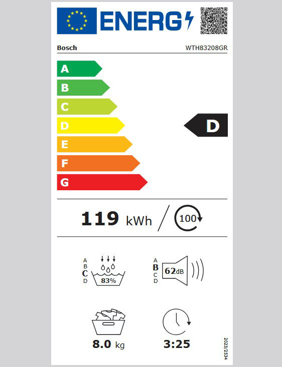 | Χωρητικότητα για στέγνωμα (kg) | 8 |